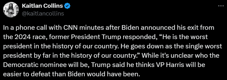 조 바이든, 대선 출마 포기 트럼프의 반응은?