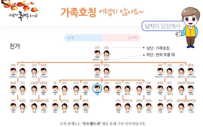 이번 추석에 알아두면 유용할 가족 호칭들을 몇 가지 소개해 드리겠습니다.