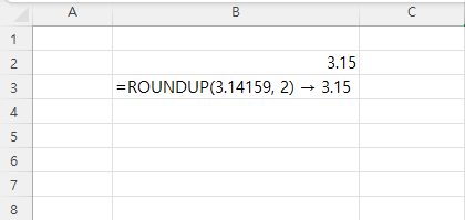 결과: =ROUNDUP(1234.5678, 3) → 1234.568